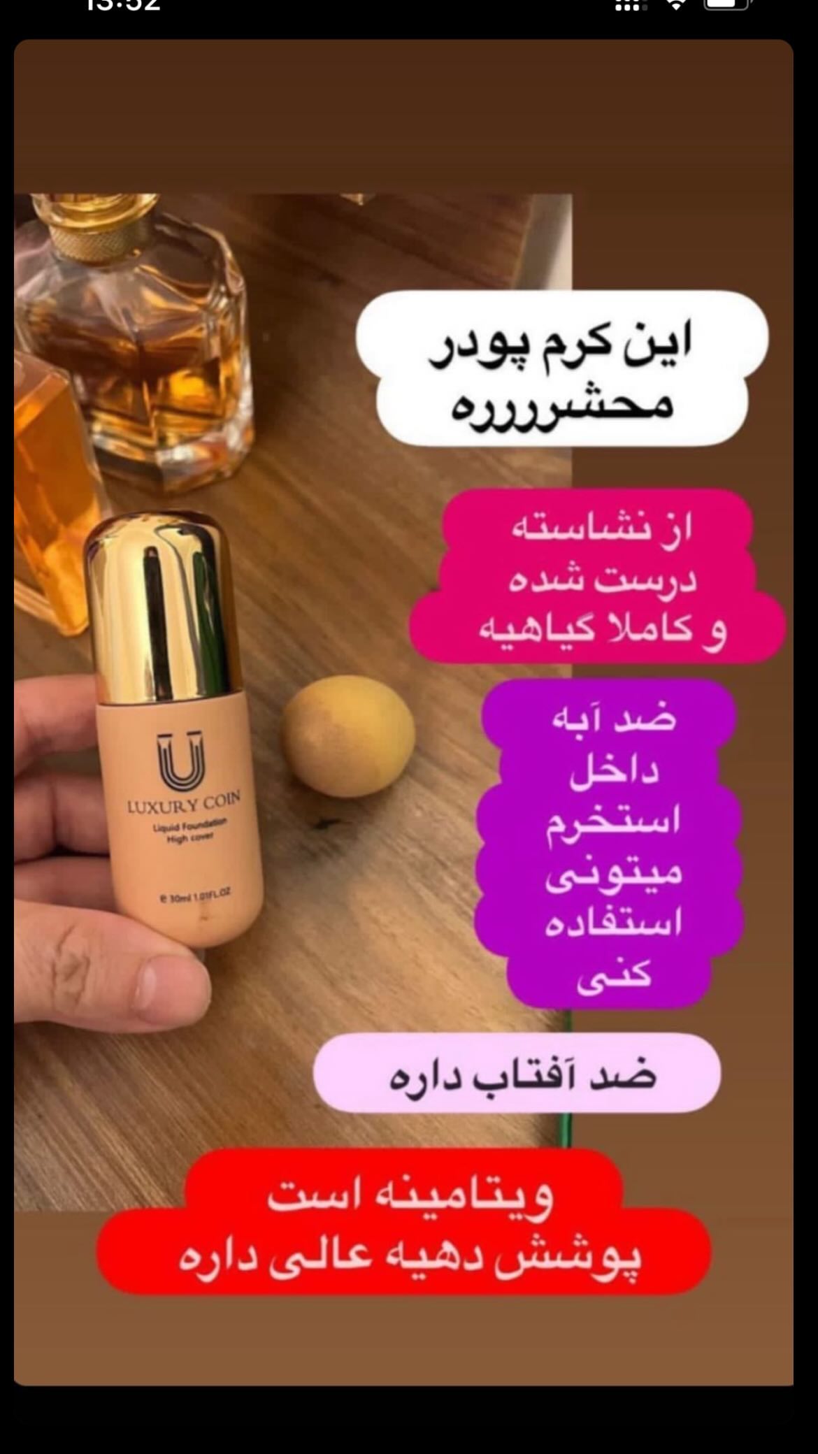 ✨ وقتی میخوای پوستی بینقص، درخشان و طبیعی داشته باشی، انتخابت فقط یه چیزه: کرمپودر لاکچری کوین 💎